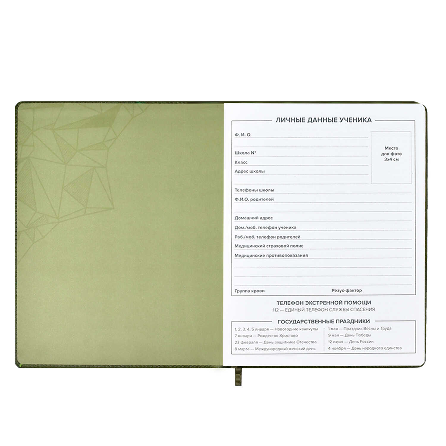 Дневник школьный А5 48 листов из кожзам в твердом переплете. Имеет одно ляссе и универсальную шпаргалку.
