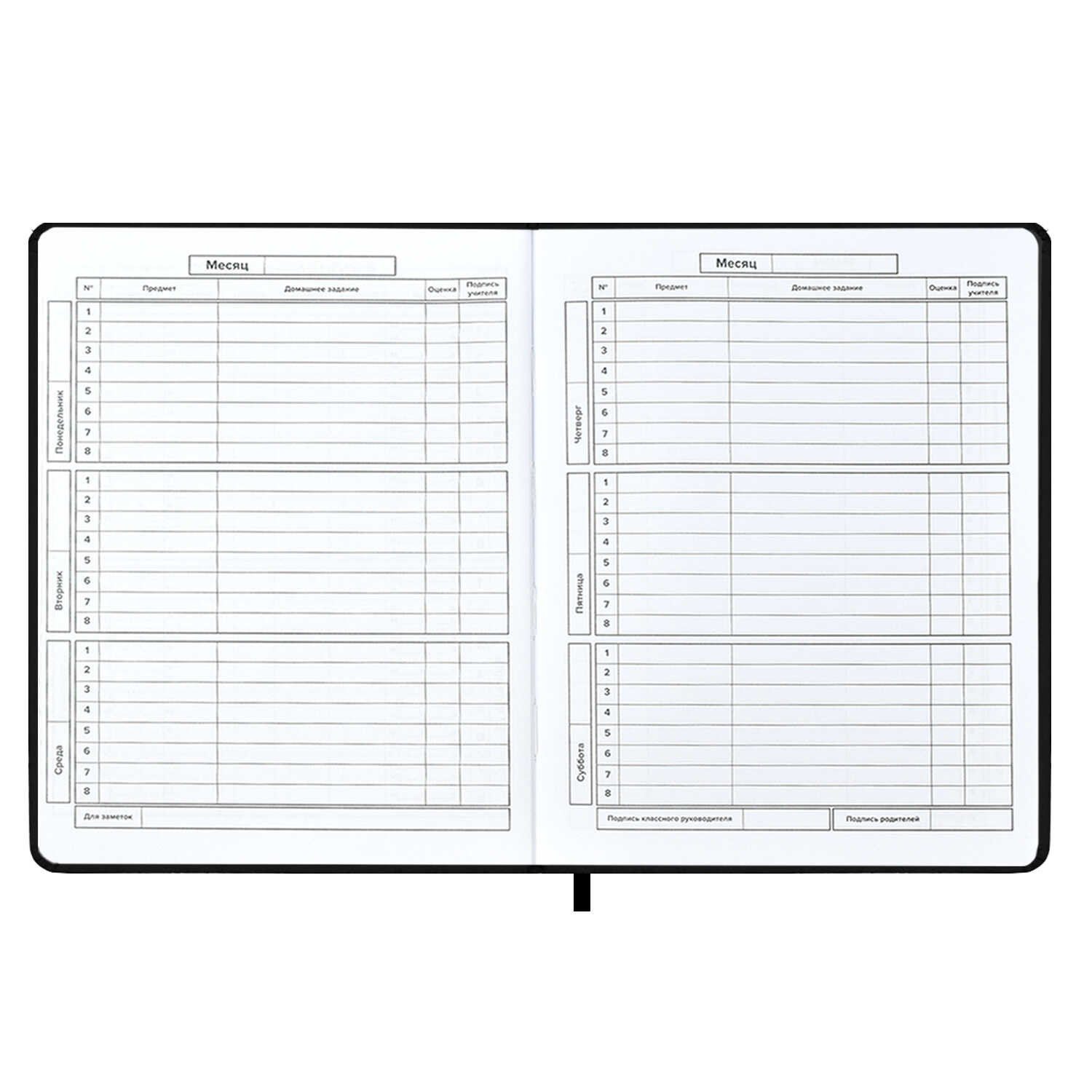 Дневник школьный А5 48 листов из кожзам в твердом переплете. Имеет одно ляссе и универсальную шпаргалку.