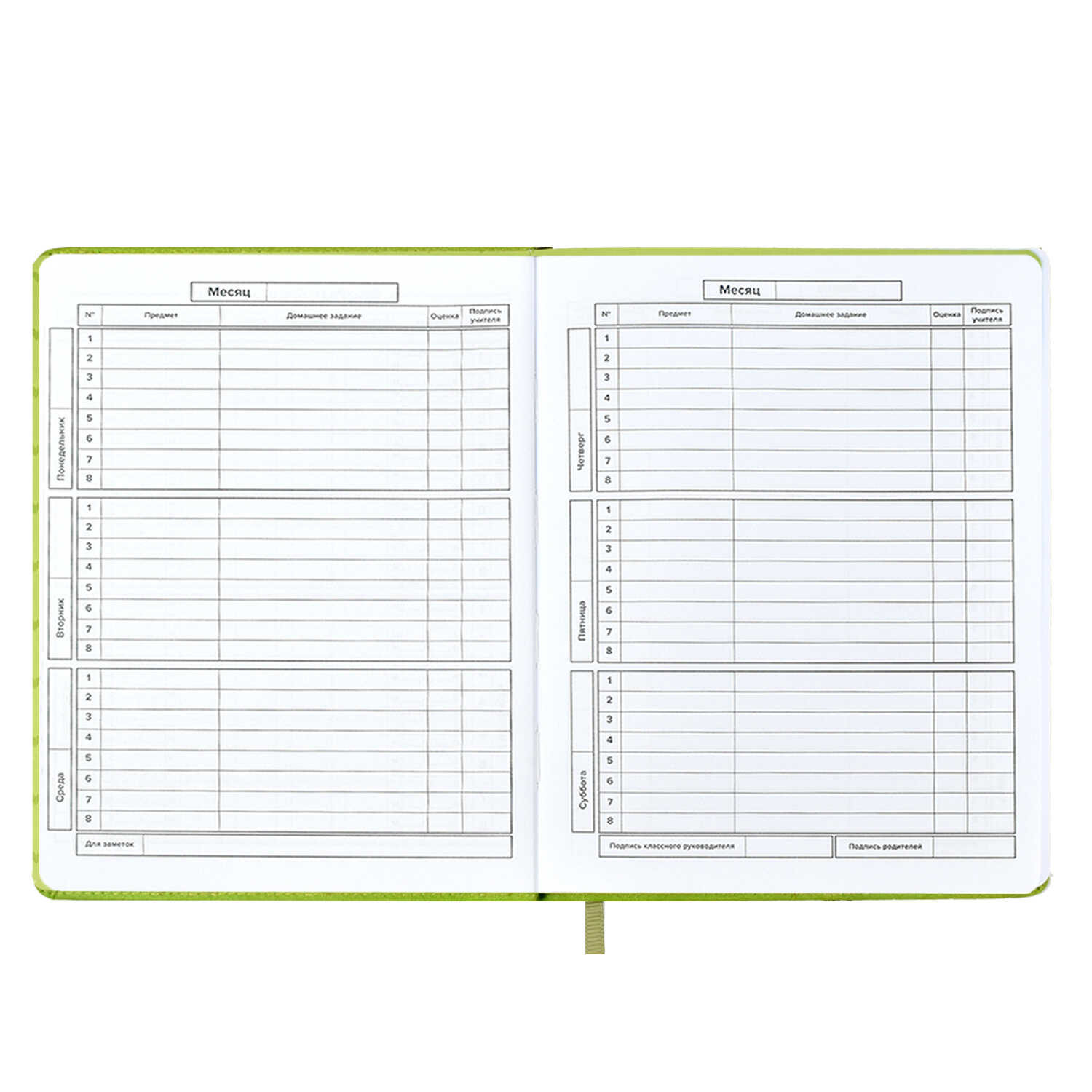Дневник школьный А5 48 листов из кожзам в твердом переплете. Имеет одно ляссе и универсальную шпаргалку.