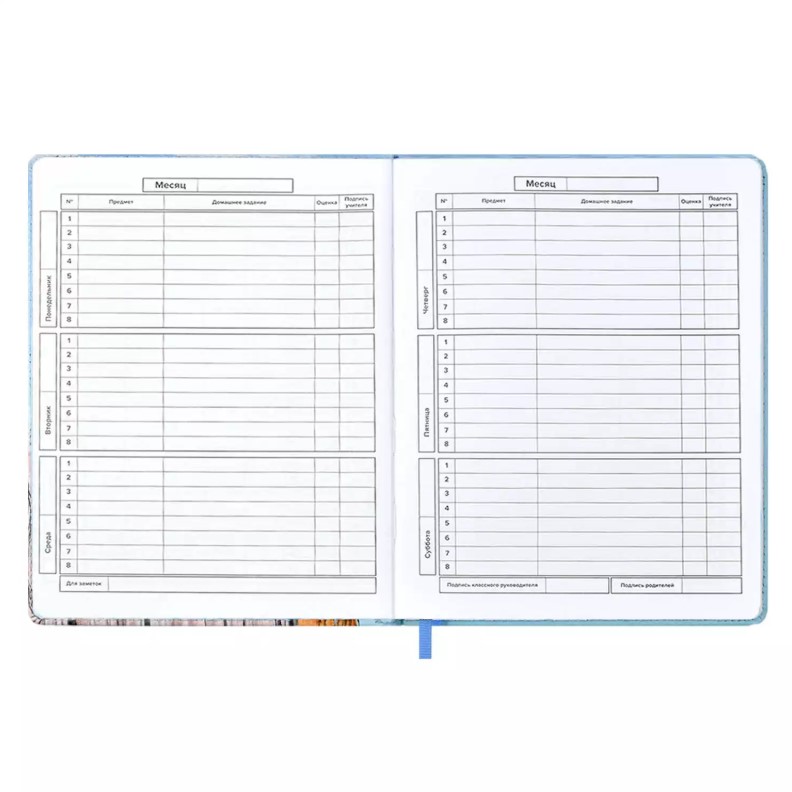 Дневник школьный А5 48 листов из кожзам в твердом переплете. Имеет одно ляссе и универсальную шпаргалку.