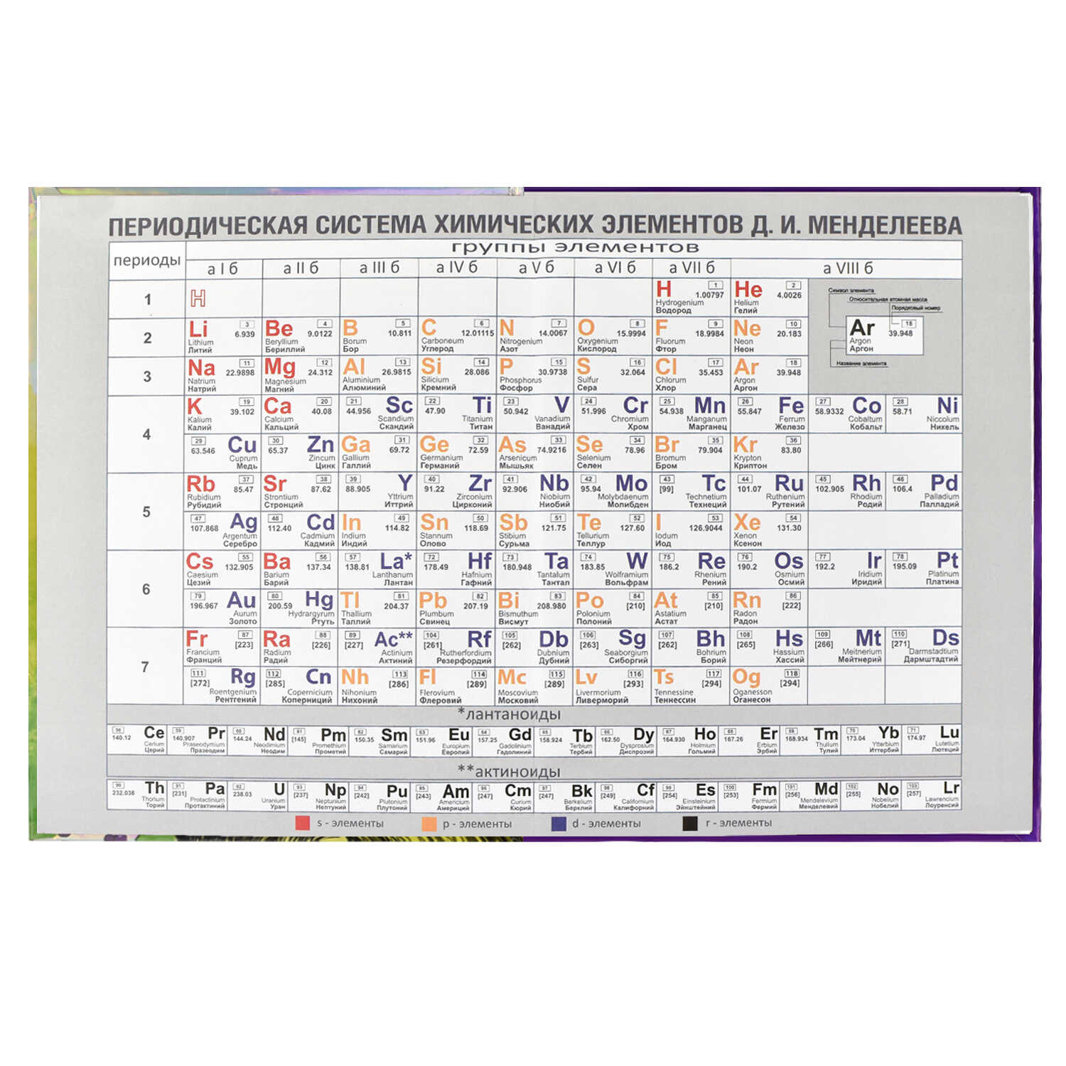- Особенности - запечатка форзацев политической картой мира и таблицей Менделеева