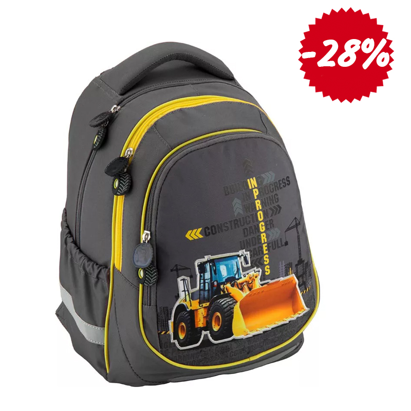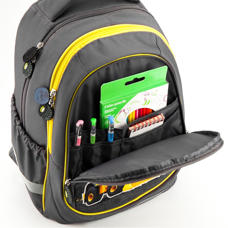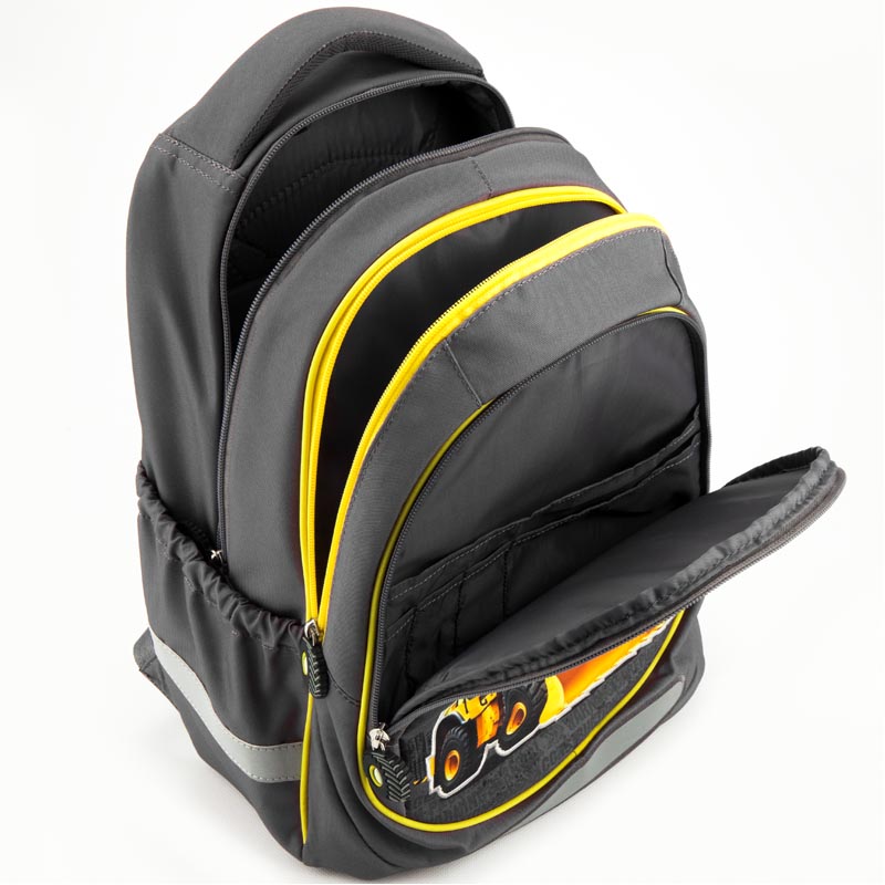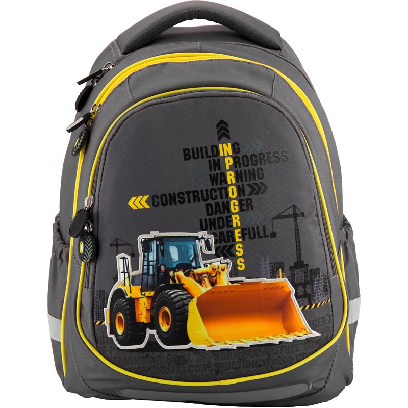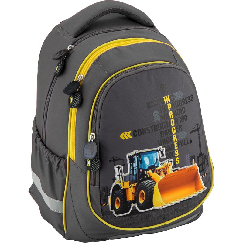 Рюкзак Kite K18-700М-1 из полиэстера серого цвета с изображением экскаватора. Изделие имеет цветную подкладку. Можно собрать комплект дизайнерской серии из рюкзака, сумки и пенала.