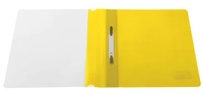 Фиксирует до 100 листов формата А4. Толщина пластика для верхнего листа - 130 мкм, для нижнего - 180 мкм. Предельно простой механизм подшивки: металлические усики и пластиковая планка для надежной фиксации документов. Скоросшиватель изготовлен из полипропилена. Снабжен прозрачным верхним листом. Для идентификации имеет сменный пластиковый корешок. Благодаря фактуре "песок" и яркому желтому цвету обложки важная папка никогда не затеряется на полке.