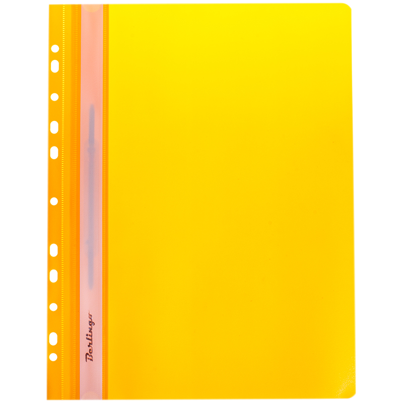 Папка-скоросшиватель Berlingo А4 пластик, перфорация, желтая 180 мкм 133512