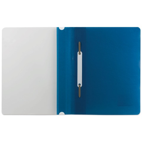 Мягкий пластиковый скоросшиватель. Предельно простой механизм подшивки: металлические усики и пластиковая планка для надежной фиксации документов формата А5. Снабжен прозрачным верхним листом. Для идентификации имеет сменный бумажный корешок.