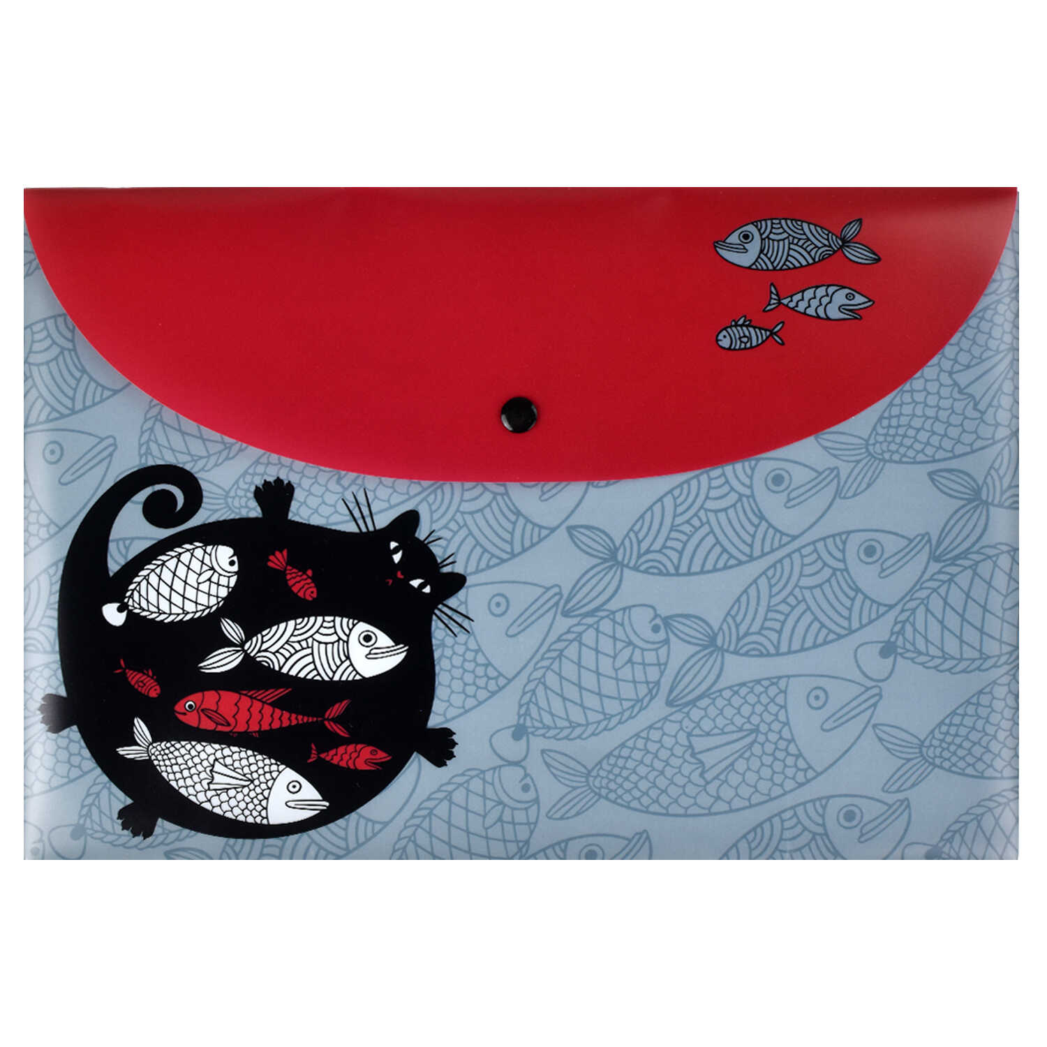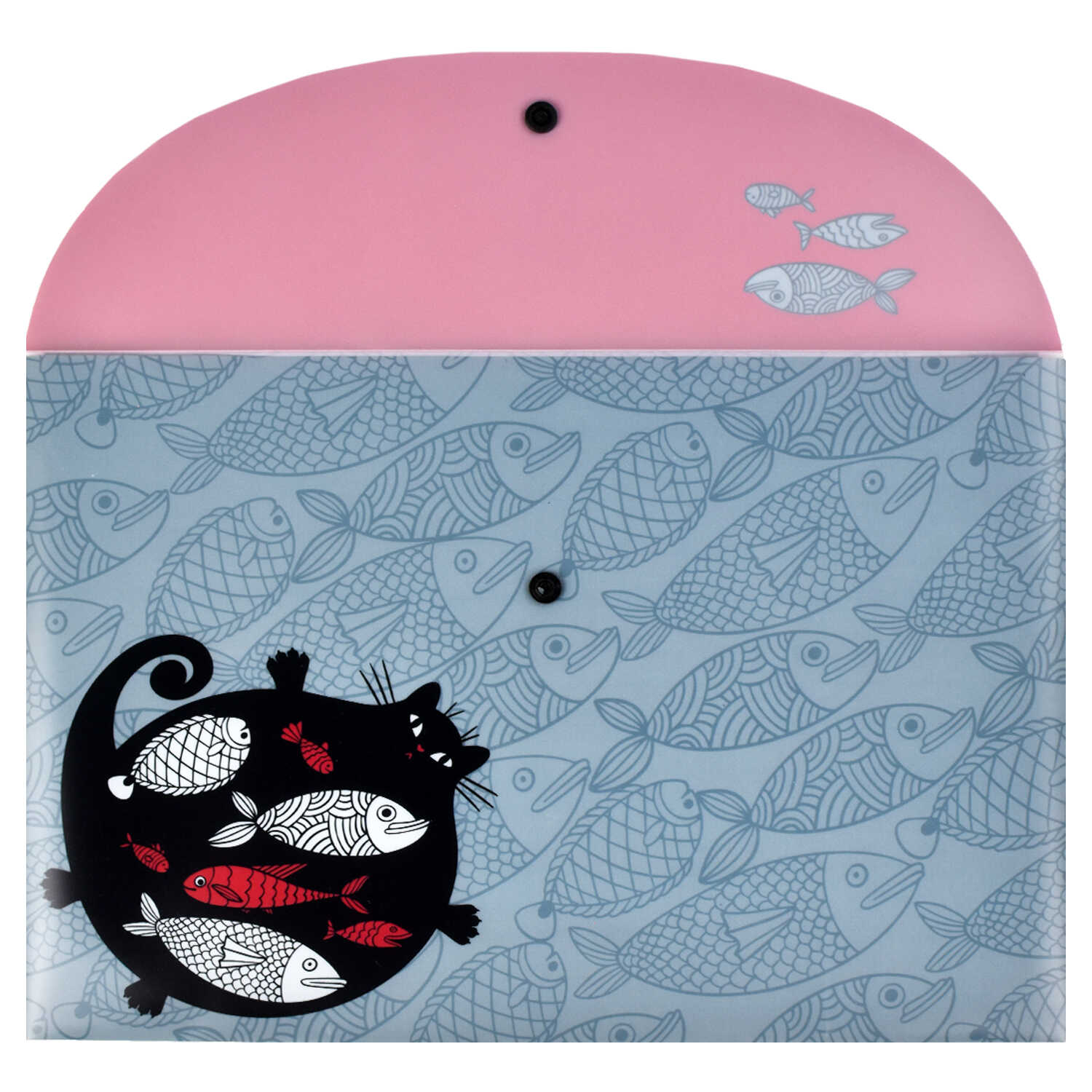 Папка-конверт на кнопке "КОТ С РЫБАМИ" формат А4, пластиковая*