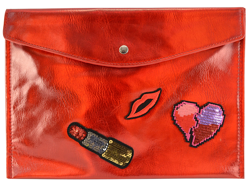 Папка А4 на кнопке 34,5*24 см "Красный" экокожа, нашивки