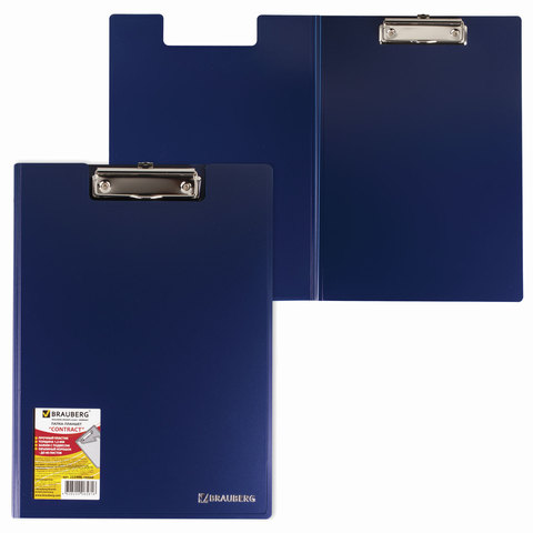 Папка-планшет А4 синяя 80 листов BRAUBERG Contrast с верхним прижимом и крышкой