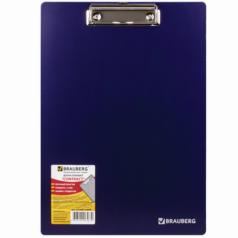 Доска-планшет А4 BRAUBERG Contract плотная верхний прижим синяя