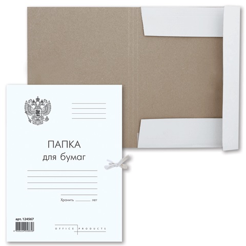 Вместительная картонная папка на завязках предназначена для хранения документов.