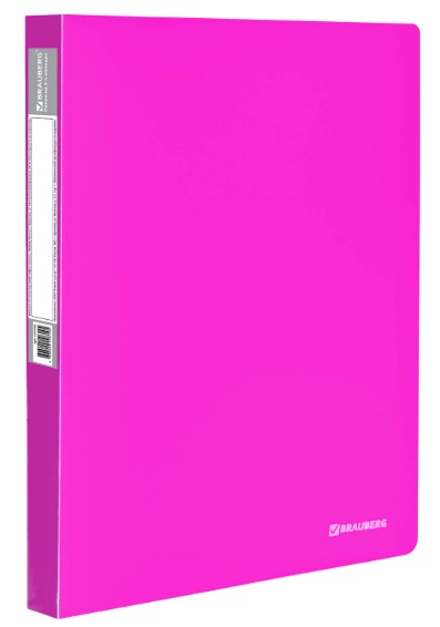 Папка "Neon" от BRAUBERG неоново-розового цвета. Предназначена для хранения документов, перфорированных дыроколом или помещенных в папку с перфорацией.