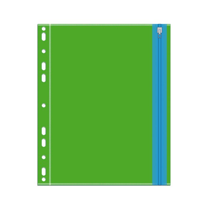 Папка-конверт на молнии, А5 "Зеленый" 1 отделение, перфорация