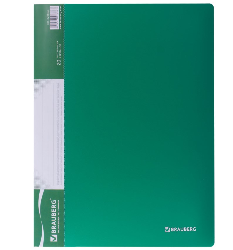 Папка А4 20 вкладышей, зеленая Brauberg