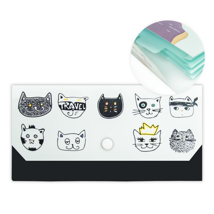 Папка-веер 230*115 мм "Коты" 4 отделения, на кнопке, пластик