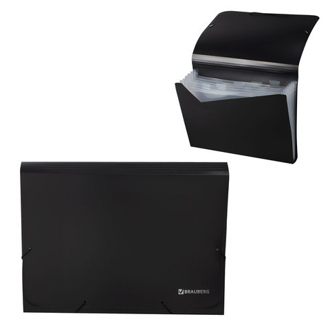 Папка на резинках BRAUBERG А4, 7 отделений, пластиковые индексы, черная