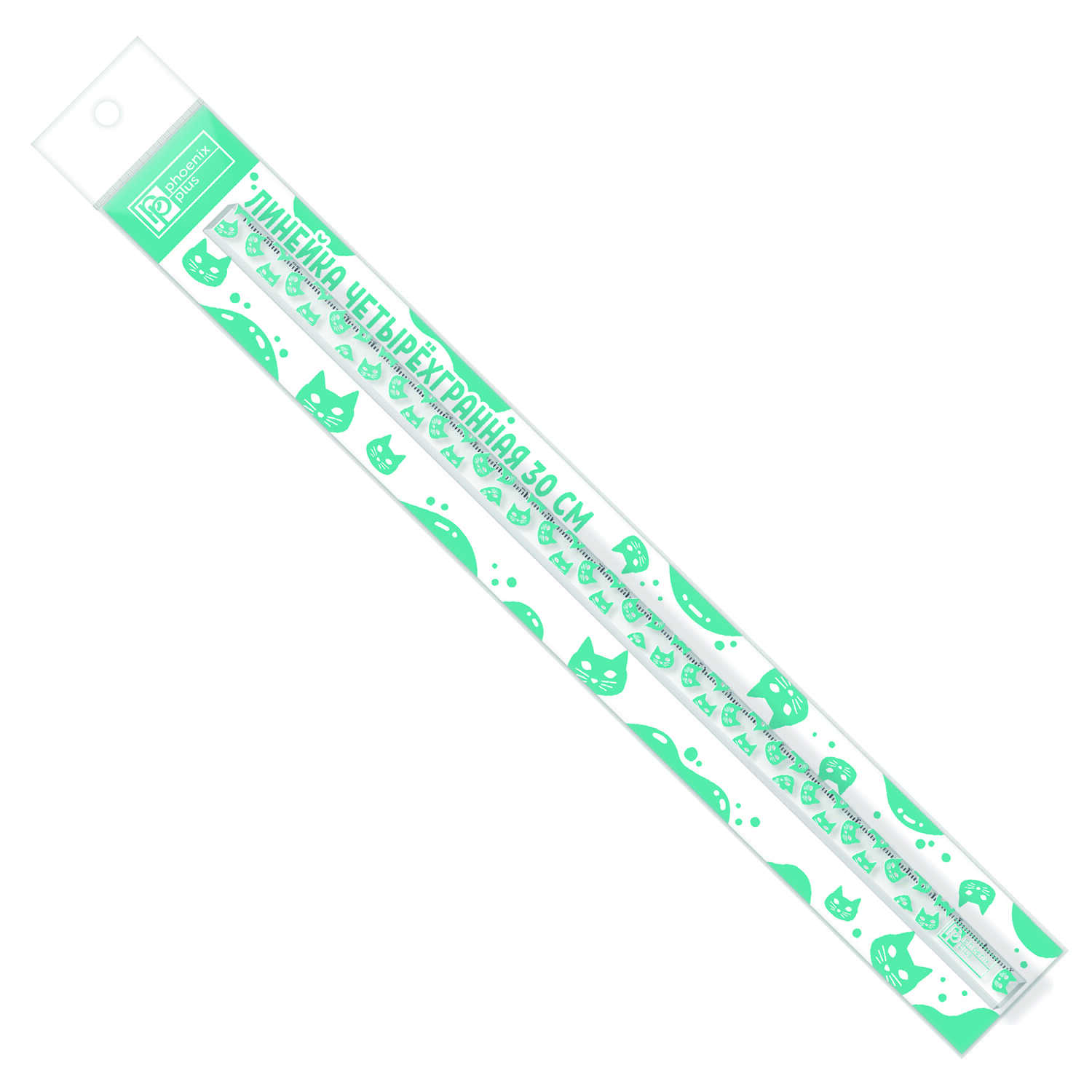 Линейка четырёхгранная 30 см "МЯТНЫЕ КОТЫ", акрил