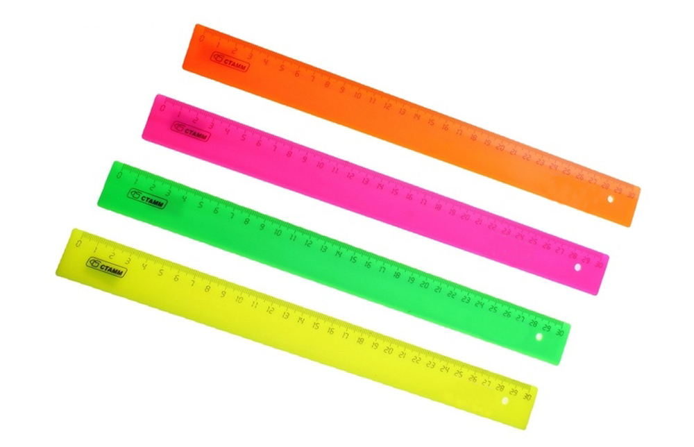 Пластиковая линейка 30 сантиметров для измерения и черчения.