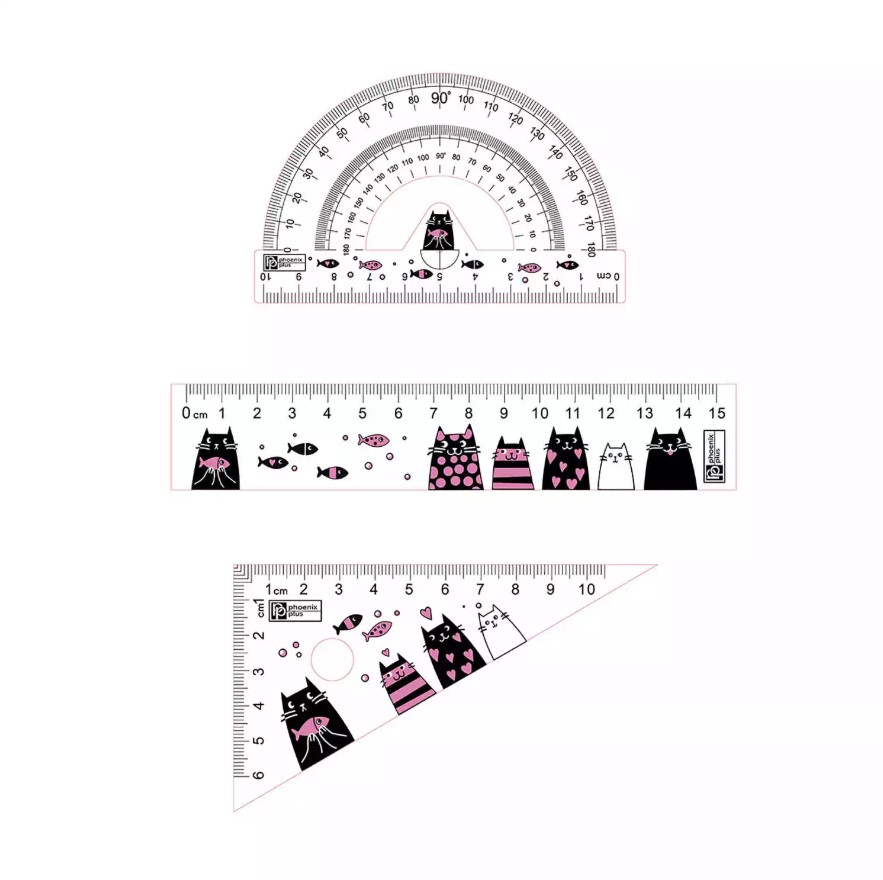 Набор линеек "КОТЫ", (линейка, транспортир, треугольник)