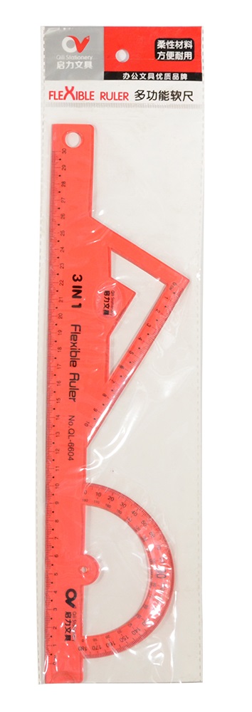 Линейка 30 см гибкая силиконовая с транспортиром и угольником 69302