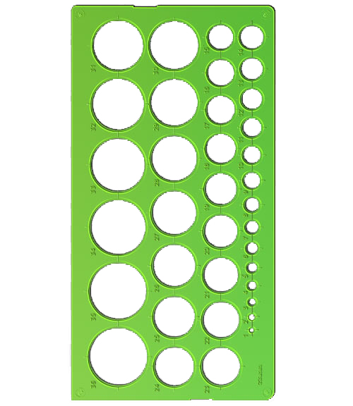 - Содержит 36 видов окружностей диаметром от 1 до 36 мм