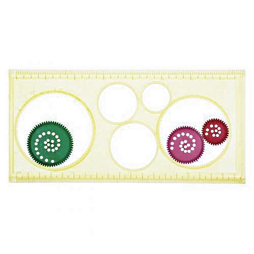 Зубчатое колесико вращается в прорези линейки и, поместив ручку в одно из отверстий этого колесика, можно получить неисчислимое количество разнообразных узоров.