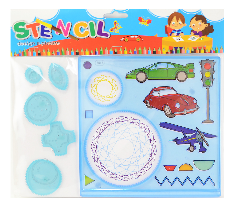 - В наборе: пластина с тематическими трафаретами, 5 зубчатых колесиков