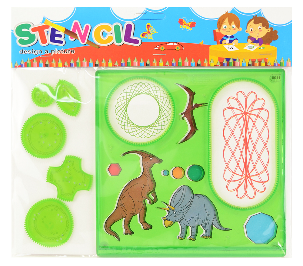 - В набор входит: пластина с тематическими трафаретами, 5 зубчатых колесиков