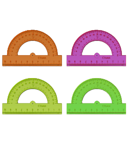 Транспортир 180 градусов, 100 мм, 4 цвета, отливная шкала NEON Cristal TP21