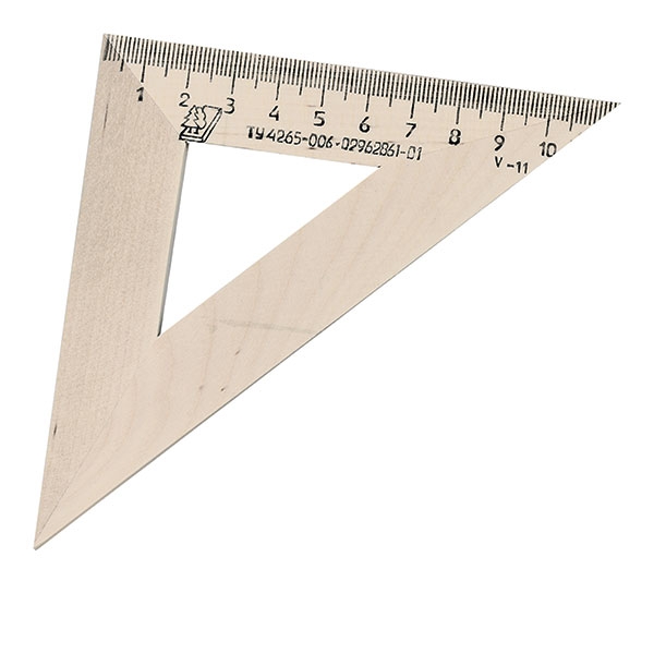 Деревянный треугольник предназначен для чертежных работ. Изготовлен из твердолиственных пород древесины. Имеют износостойкую одностороннюю миллиметровую шкалу