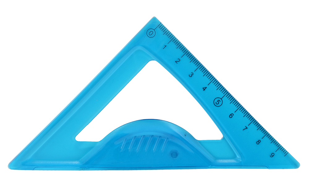 Линейка-равнобедренный треугольник из полупрозрачного гибкого пластика.