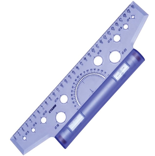 - Особенности: встроенный транспортир, пластиковый ролик, трафареты окружностей