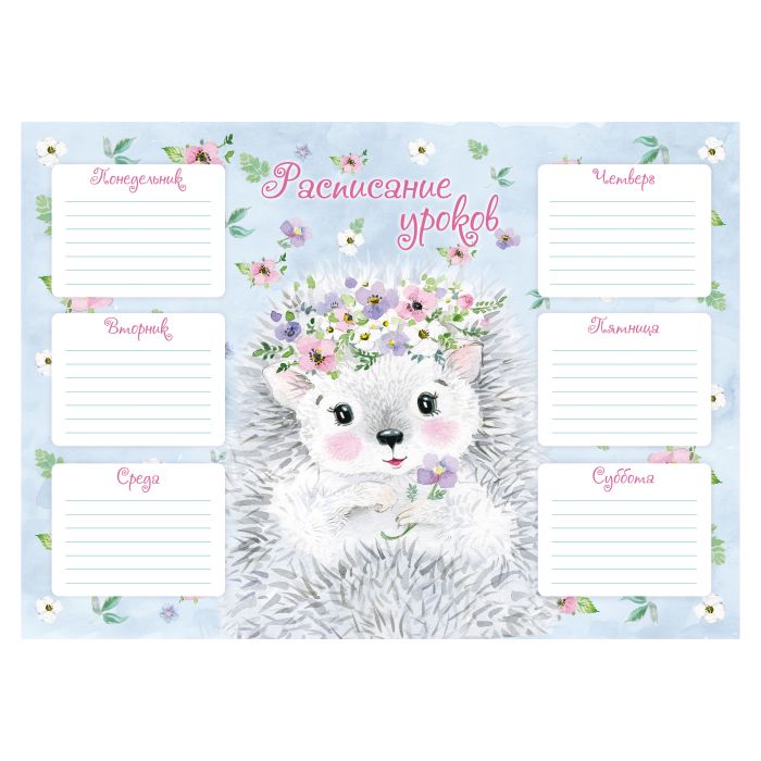 Расписание уроков А3 "Ежик в цветах" мелованный картон 230 г/м2