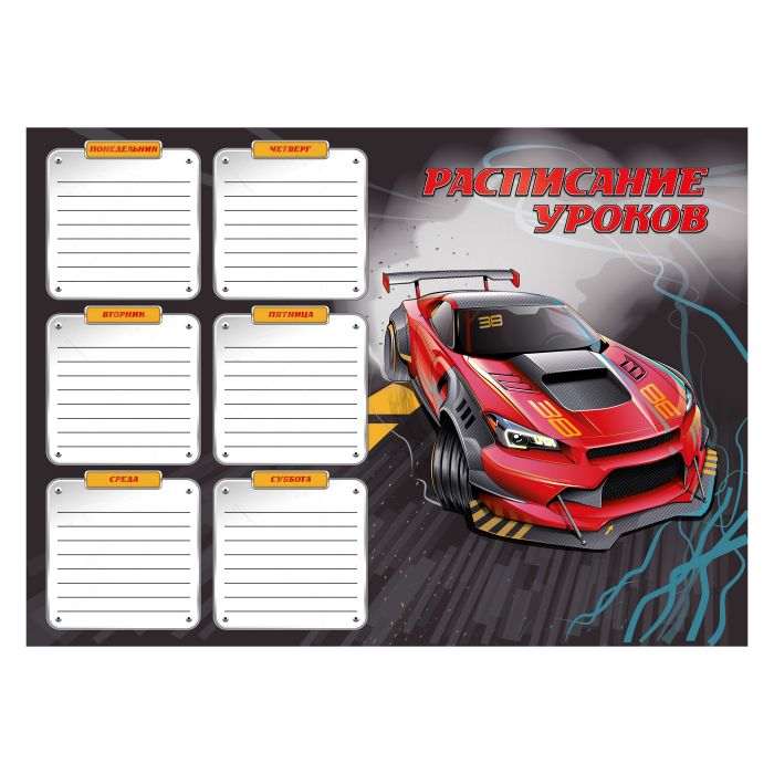 Расписание уроков А3 "Гоночная машина" мелованный картон 230 г/м2