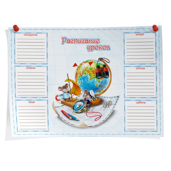 Расписание уроков А3 "Мышки путешественники" уф лак, горизонтальное