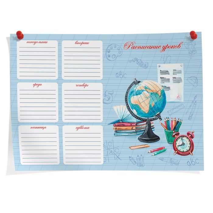 Расписание уроков А4 "Время знаний" уф лак, горизонтальное