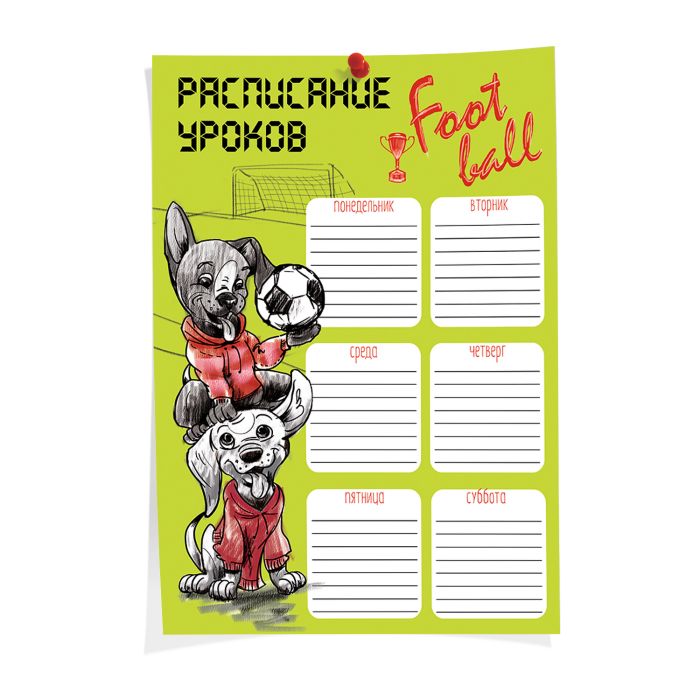 Расписание уроков А4 "Собаки футболисты" уф лак, вертикальное*