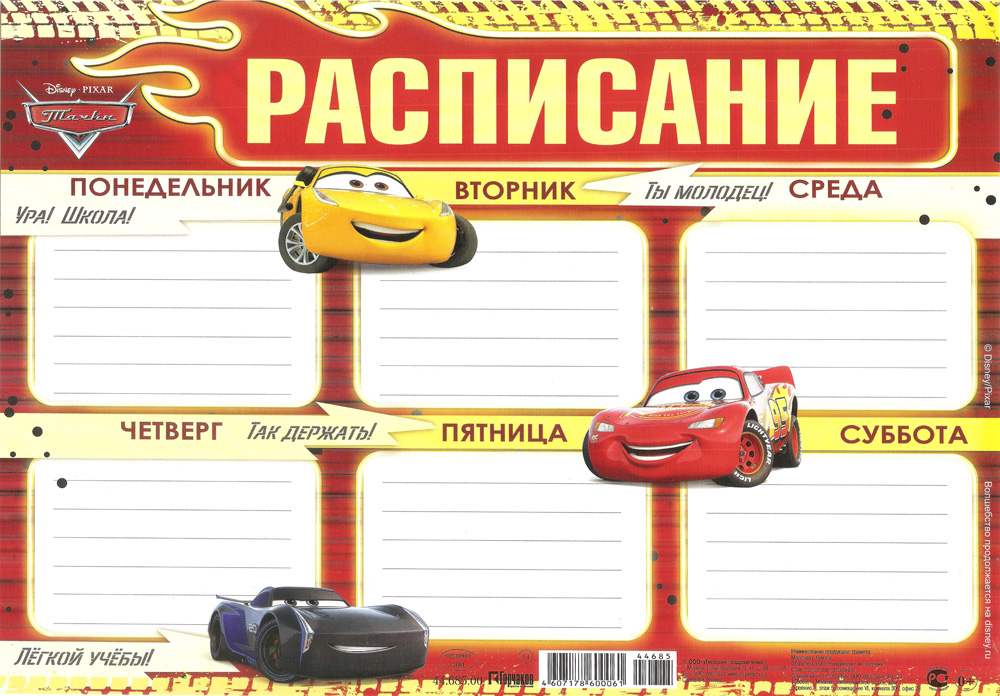 Расписание уроков "Тачки" А4 44.685.00