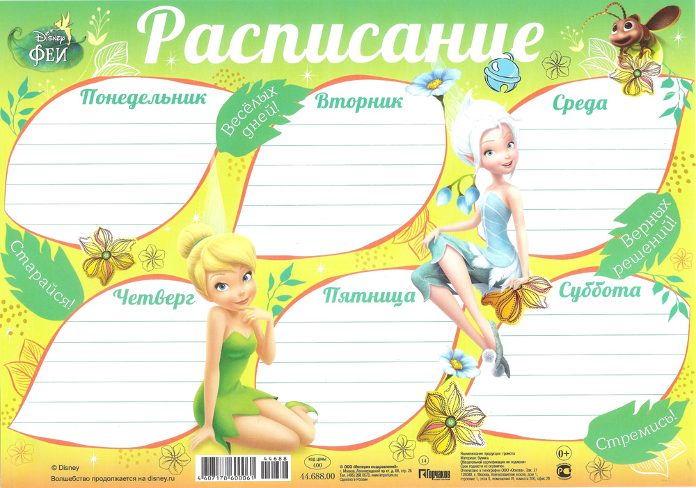 Расписание уроков "Феи" А4 44.688.00