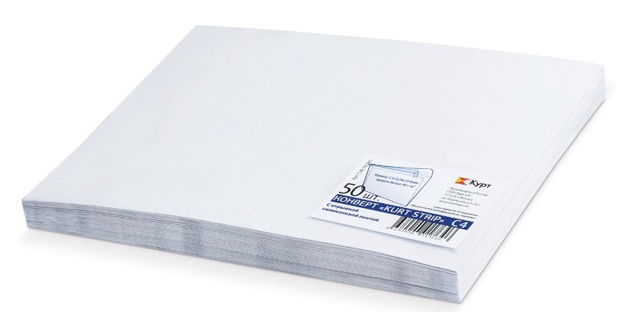 Конверт С4 50 штук белый отрывная полоса 229*324 мм Kurt Strip 124216 С40.10.50С