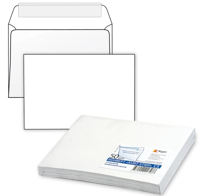 Конверт С5, комплект 50 штук, отрывная полоса 80 г/кв.м KURT STRIP
