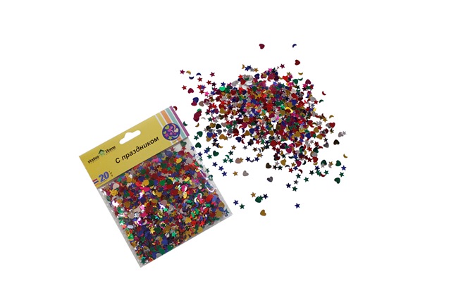 Мелко нарезанные цветные из фольги конфетти в форме сердечек, звезд и месяца. Используется для декорирования стола - конфетти рассыпанное на столе является необычной и привлекательной формой украшения праздничного застолья. Поводов много: Новый год, Свадьба, День рождения, Юбилей. Еще один оригинальный способ порадовать друзей и близких - насыпьте конфетти в конверт с открыткой - это будет неожиданный сюрприз! Так же конфетти прекрасный материал для аппликаций и рукоделия.