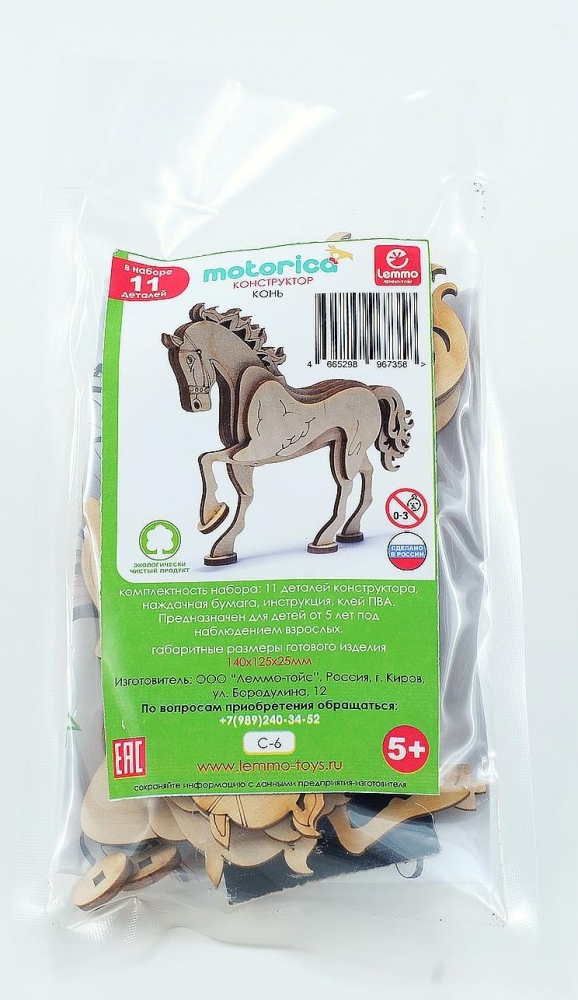 Набор для творчества. Конструктор 3D деревянный Lemmo Конь