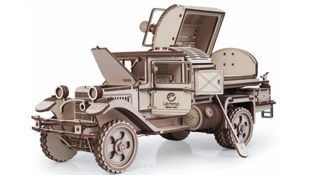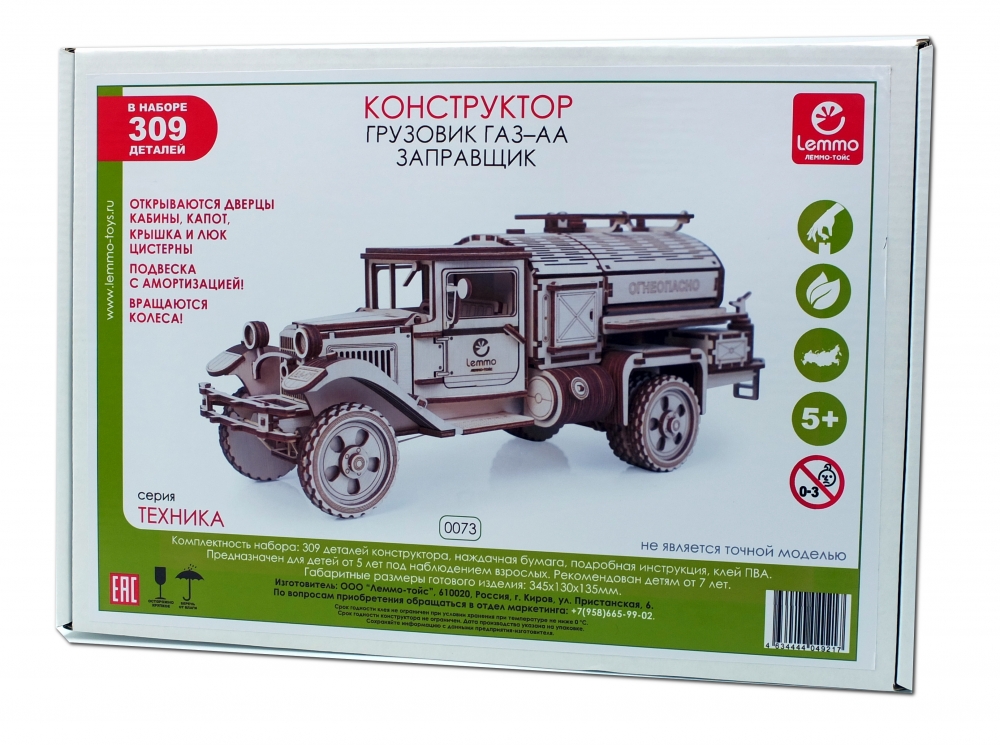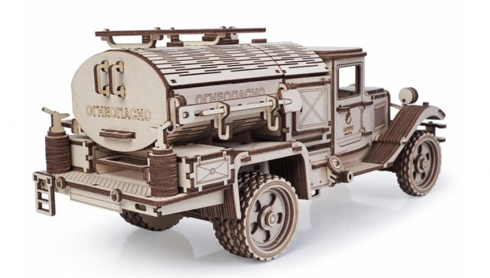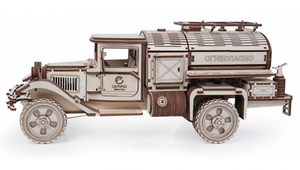 Набор для творчества. Конструктор 3D деревянный подвижный Lemmo Грузовик "Полуторка" Заправщик