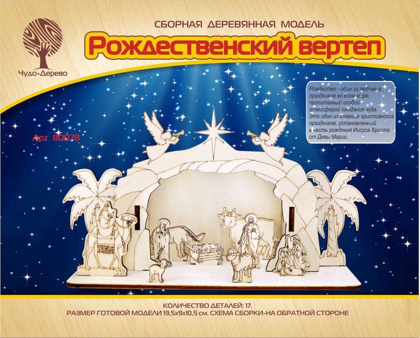 Сборная деревянная модель "Рождественский вертеп" - это отличный подарок к светлому празднику Рождества! Ведь Рождество - один из самых любимых праздников во всем мире, пропитанный особой атмосферой ожидания чуда. Деревянная модель узнаваемого вертепа отлично будет смотреться в каждом доме накануне праздника!