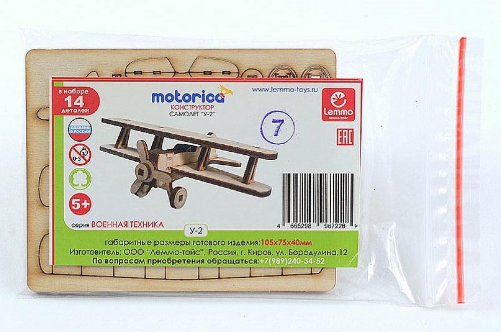 Набор для творчества. Конструктор 3D деревянный подвижный Lemmo "Советский самолет И-15"