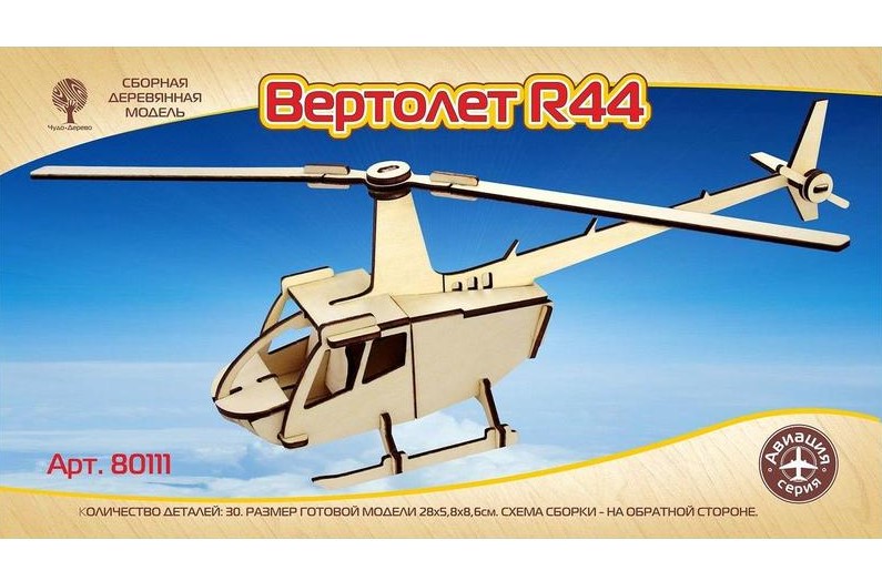 Набор для творчества. Сборная деревянная модель "Вертолет R44"