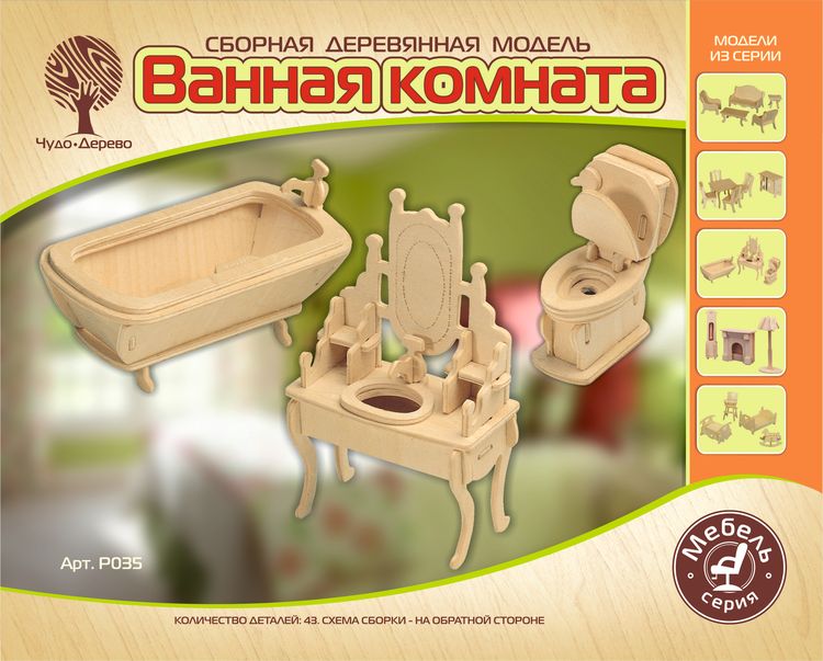 Сборная деревянная модель "Ванная комната" Чудо-Дерево