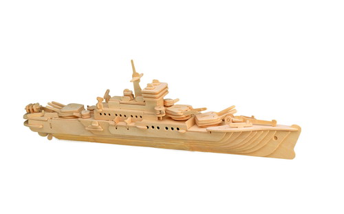 Сборная деревянная модель Крейсер, артикул: P047. Комплект включает в себя набор деталей, вырезанных на фанерных листах; схему сборки; наждачную бумагу. Детали скрепляются в порядке и очередности, обозначенной в инструкции. Для прочности соединений рекомендуется использовать клей ПВА (не токсичен, не имеет запаха, после высыхания становится прозрачным, имеет эластичный клеевой шов, при загустевании может быть разбавлен водой). Возрастная ориентация: от 5 до 105 лет.