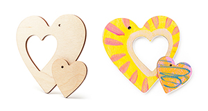 Заготовка обработана лазером и отполирована до гладкости, поэтому не стоит бояться заноз и царапин. Фигурку можно разделить на две части, вытащив сердечко, и получить сразу две игрушки! Создавайте неповторимые сувениры, дарите подарки, сделанные с душой, а также собирайте коллекцию оригинальных поделок из дерева.