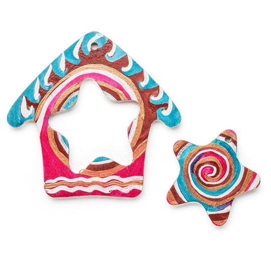 В этом домике всегда светло! Хотите сделать своими руками новогодний символ родного очага? Мы предлагаем отличную деревянную заготовку для воплощения ваших творческих планов. Раскрасьте фигурку с двух сторон, а потом вытащите звездочку из середины.
